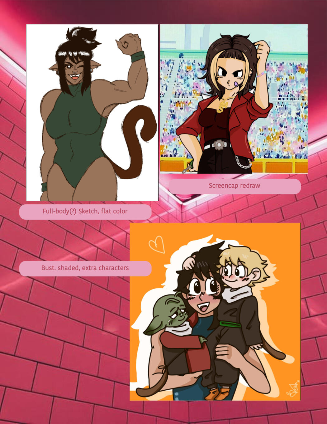 Backgrounds on commissions will include solid color background as well as a png for color pieces. If you would like a more complicated background it will be +$5 because it takes me a bit longer.